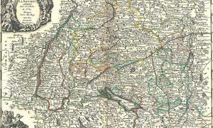 Post-Charte von dem ganzen Churfürstentum Braunschweig-Lüneburg nebst den angränzenden Ländern : nach Ohsens grossen Carte entworfen. Mit Röm. Kaiserl. allergn. Freyheit. Johann Christoph Homann (1703-1730)