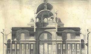 Coupe entravers de la nouvelle Eglise de Sainte Genevieve Patrone de Paris Présenté au Roy par Monsieur le Marquis de Marigny […] Souflot, J.B. (dess.)