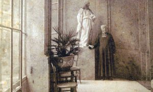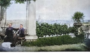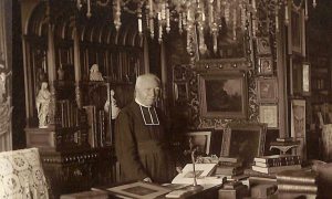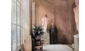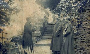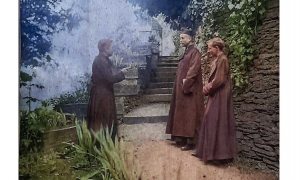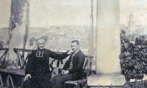 Mgr Pasquier : Directeur de l'école Saint Aubin -" Mgr Pasquier sur un banc de la terrasse école Saint Aubin"