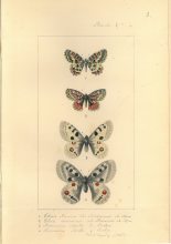 1-Thais Rumina var Medesicaste (B. Alpes). 2-Thais Medesicaste ab. Honoratii (B. Alpes). 3-Parnassius Apollo ♂ (Luchon). 4-Parnassius Apollo ♀ (Luchon- Val d'Esquéry 2500 m) |