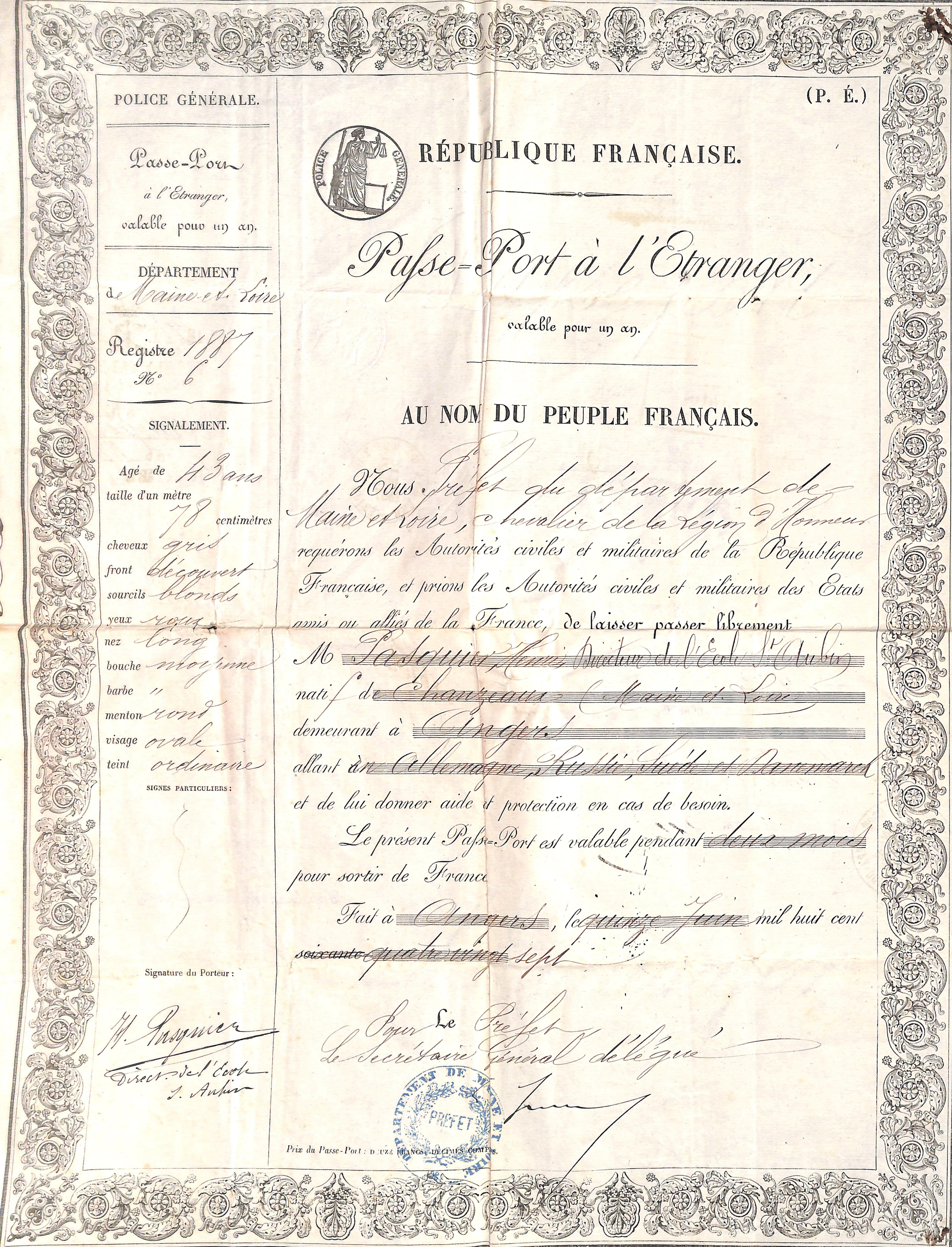 Souvenirs de voyage en Russie de Henri Pasquier (1844-1927) : Passeport à l'étranger