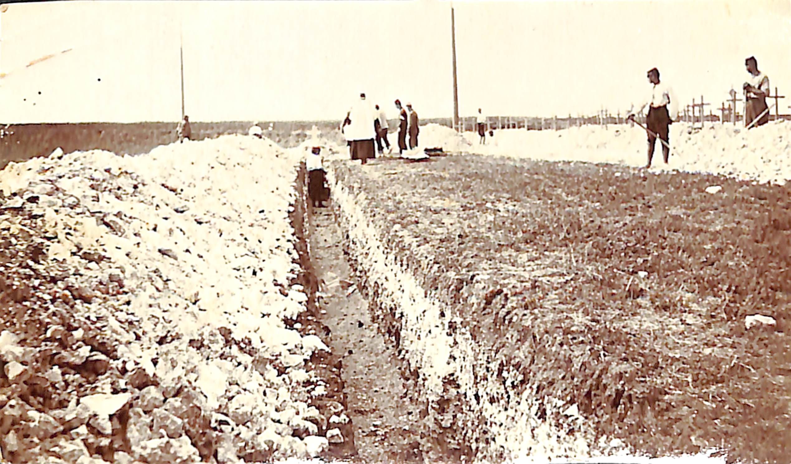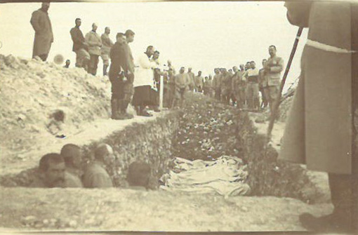 Cimetière de Frévin-Capelle (juin 1915). La descente des corps dans la tranchée |