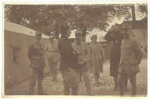 Photographie de groupe. . Aumonier Civrays. Militaires et baraquements |