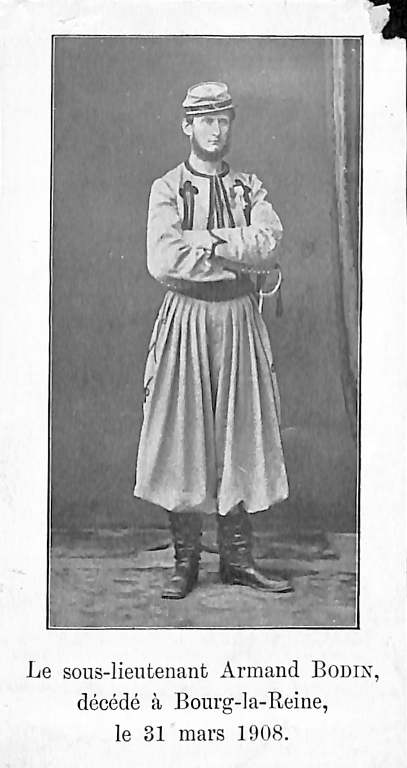 TitreZouaves pontificaux : Sous-lieutenant Armand Bodin décédé à Bourg-la-Seine le 31 mars 1908